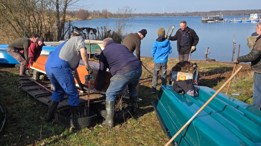 Das andere Team kümmerte sich unter Leitung von Lutz K. um den Anglerbootssteg am Cospudener See. Angelfreund Lutz hatte auch Angler von anderen Vereinen aktiviert um notwendige Pflegearbeiten durchzuführen.