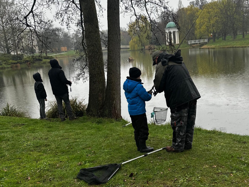 Trotz absehbar schlechter Wetterverhältnisse waren alle gemeldeten Kinder pünktlich um 8.00 an Ort und Stelle, um den Fischen auf den Leib zu rücken.
